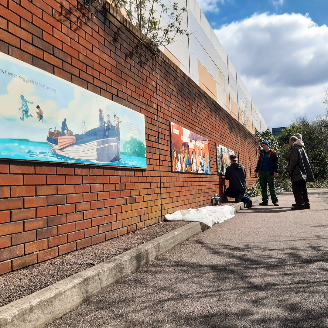 – On the history wall you can see the characters fishing with a monk, helping (with not much success) the local industries of the brickmakers and of the jam factory, and sailing on a solar-powered water bus, one of our visions for a sustainable future.